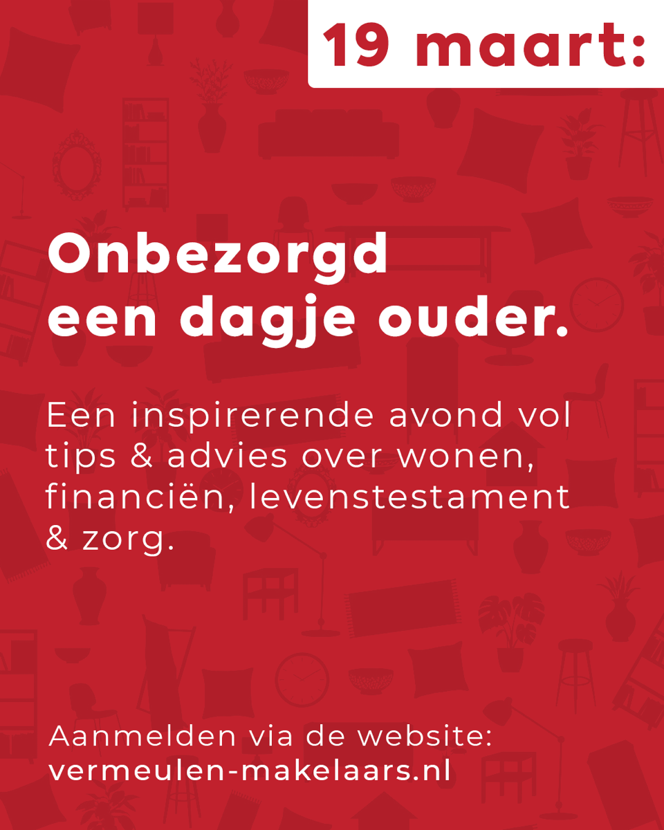 Tijdens dit avondvullend programma op donderdag 19 maart komen de verschillende thema’s aan bod waardoor de bezoekers van deze avond duidelijke handvatten worden aangeboden en zij nu of in de toekomst duidelijke keuzes kunnen maken. Natuurlijk is er ook gelegenheid voor het stellen van vragen en in gesprek te gaan met de experts.