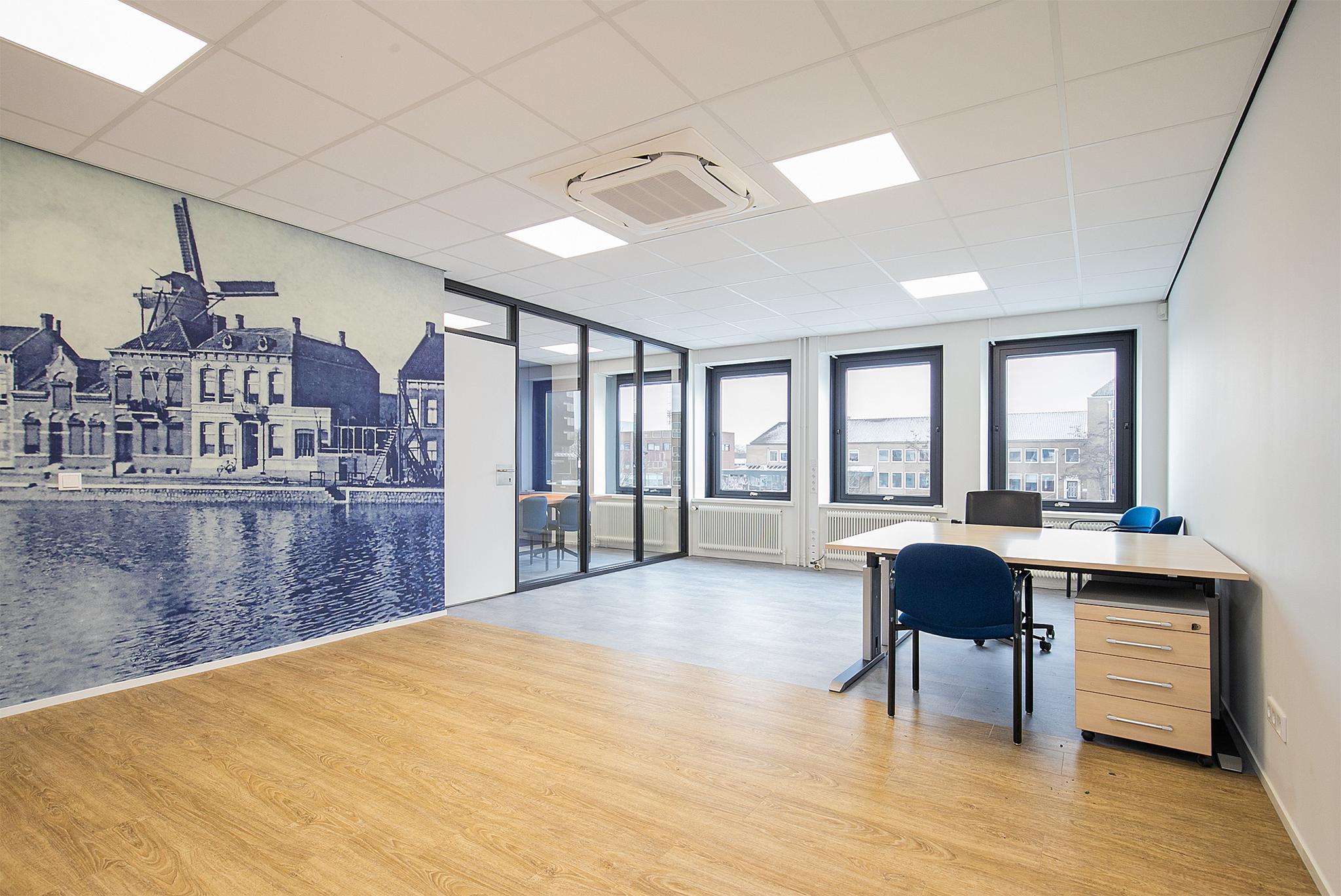 Dit in combinatie met veel daglicht, is het prettig werken in deze stad. Het kantoorgebouw is in het centrum gelegen op loopafstand van hoofd winkelstraat en directe omgeving van toonaangevende kantoren/banken zoals; ABN-Amro bank, Rabobank, advocatenkantoor en ander dienstverleners. Sfeervol horeca gebied direct grenzend aan het gebouw geeft een extra dimensie aan het (net)werken op deze plek.