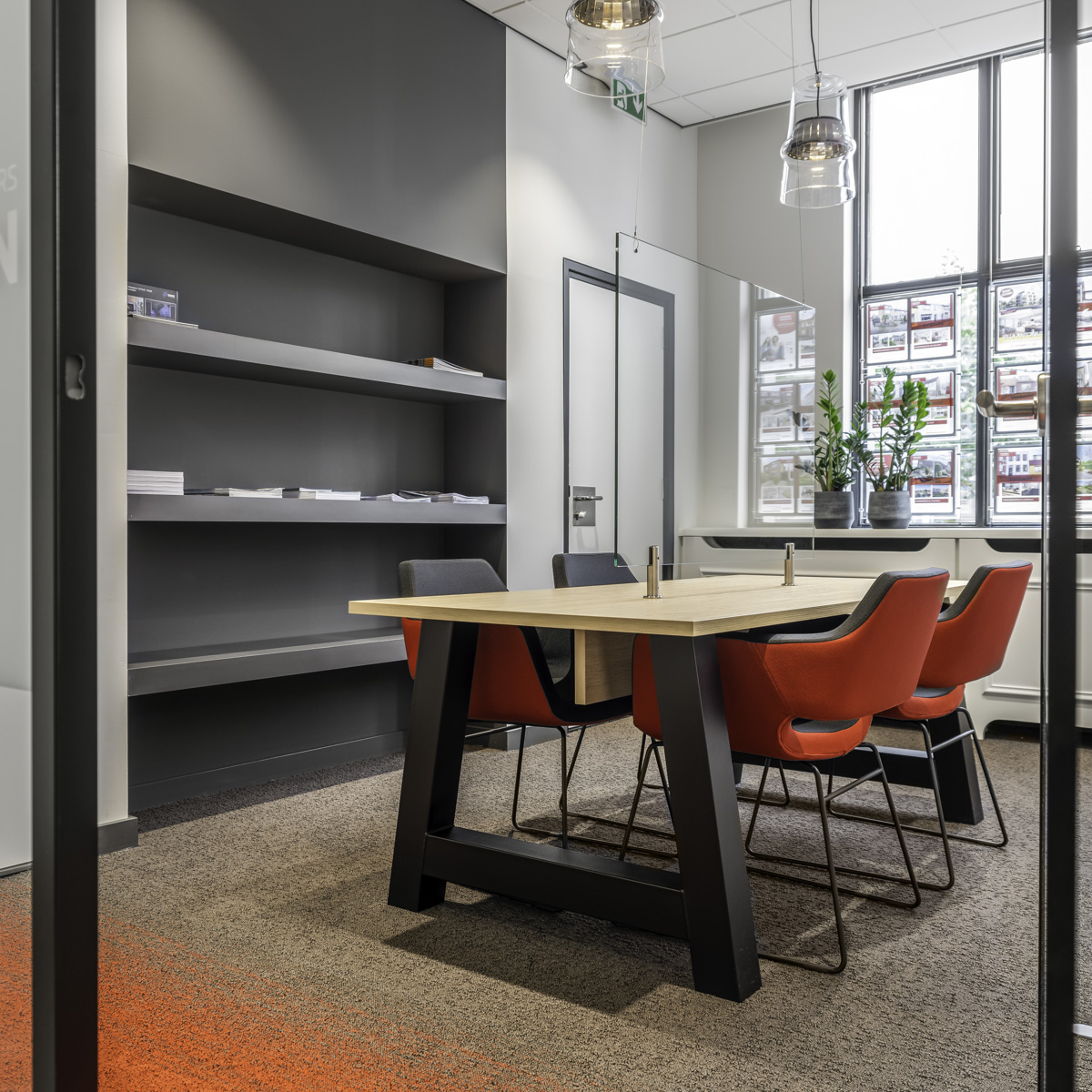 Het gebouw biedt de mogelijkheid tot het gezamenlijk te gebruiken van spreek/presentatieruimten. Op afspraak te reserveren.