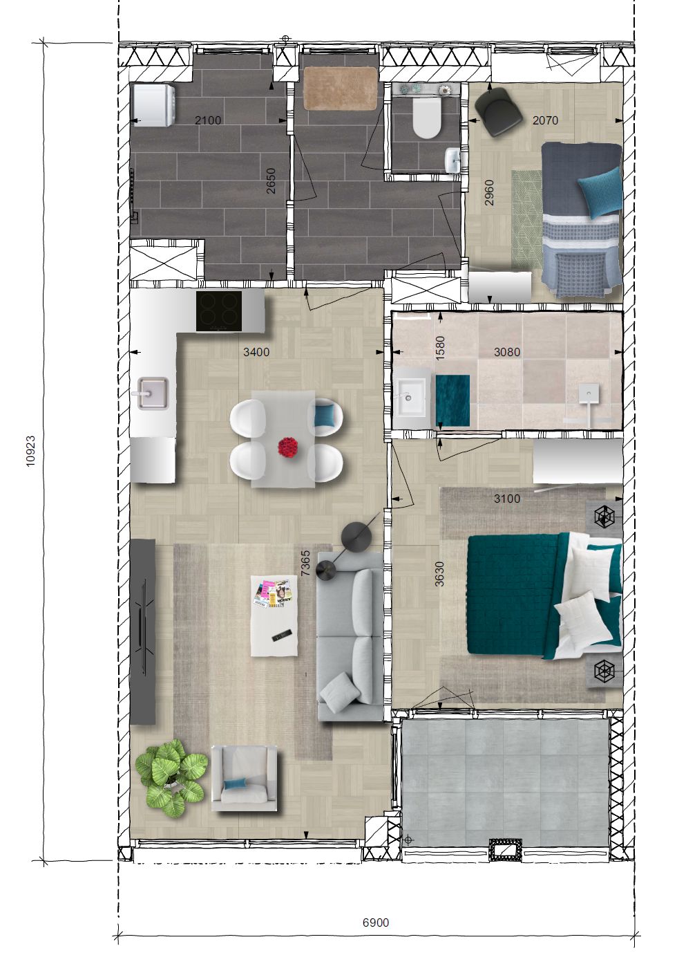 Dit type appartement is beschikbaar tussen de 61-66m2