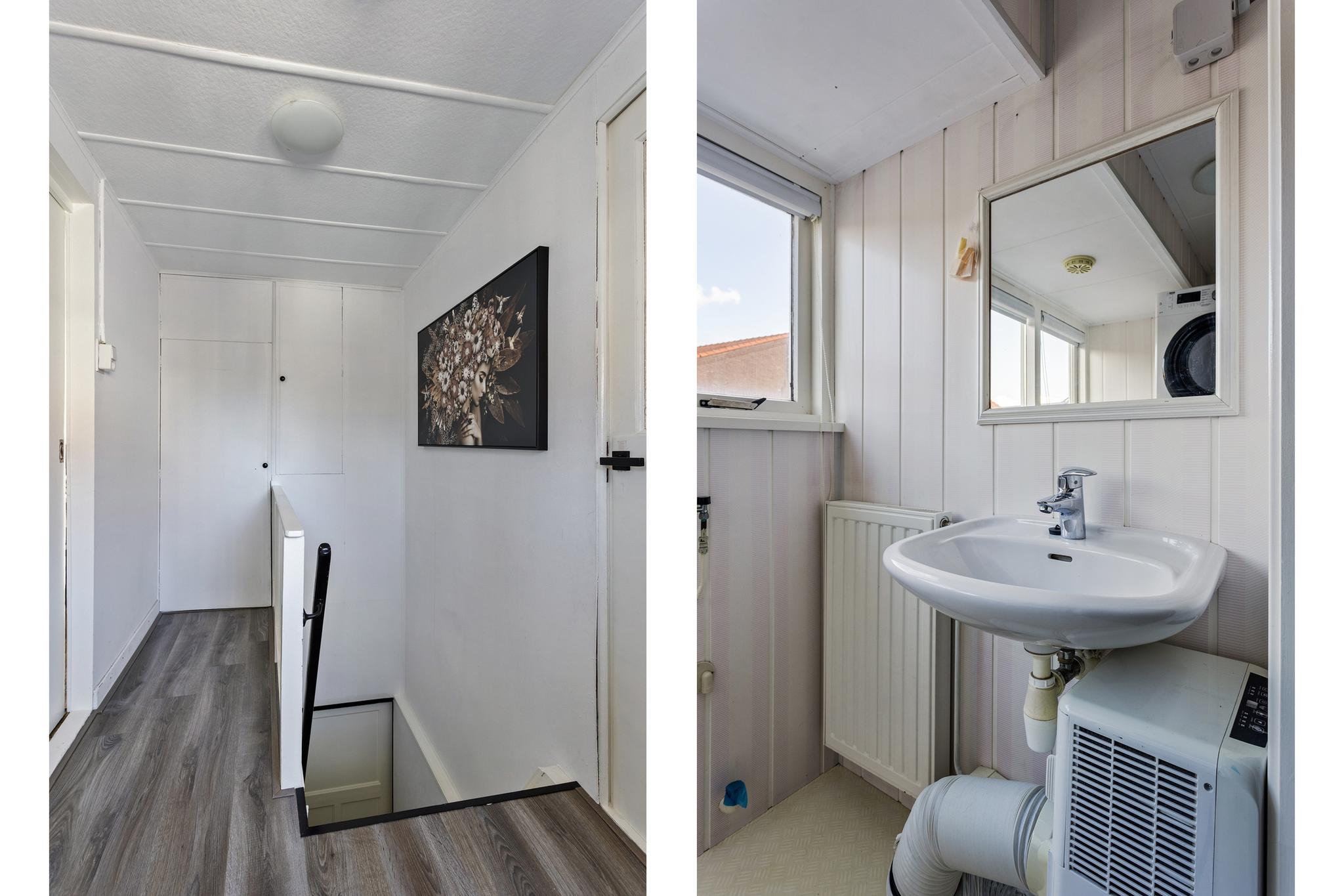 De grootste slaapkamer bevindt zich aan de voorzijde van de woning en is voorzien van rolluiken voor een goede privacy en nachtrust. Ook de slaapkamer aan de achterzijde heeft een rolluik en tevens een vaste kastenwand. Op de overloop is nog een extra kastenwand. In de afzonderlijke wasruimte zijn de aansluitingen voor de wasapparatuur en is voorzien van een wastafel.