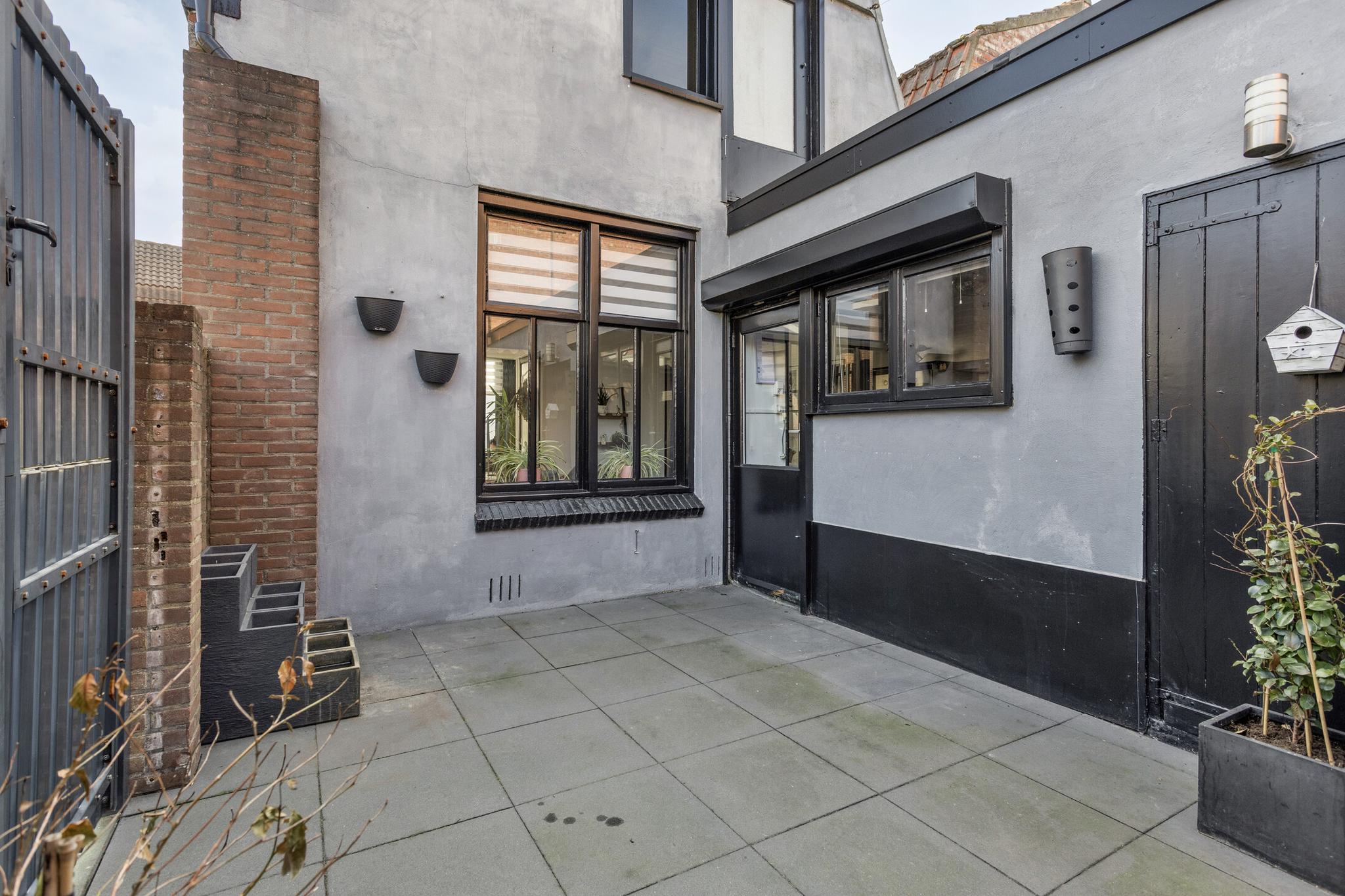 De knusse stadstuin is onderhoudsvriendelijk aangelegd (in 2020 opgeknapt) en voorzien van een overkapping en poort.