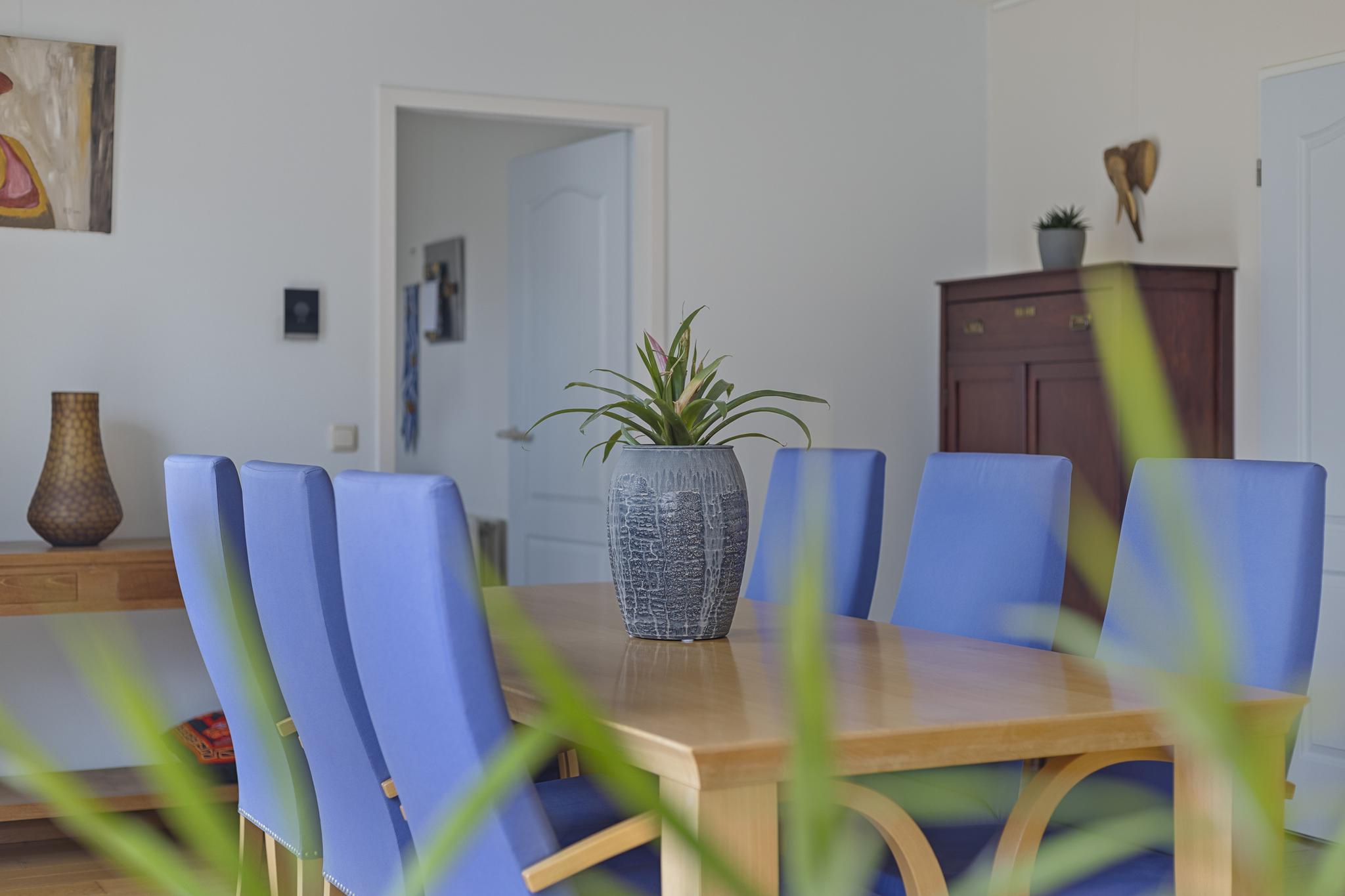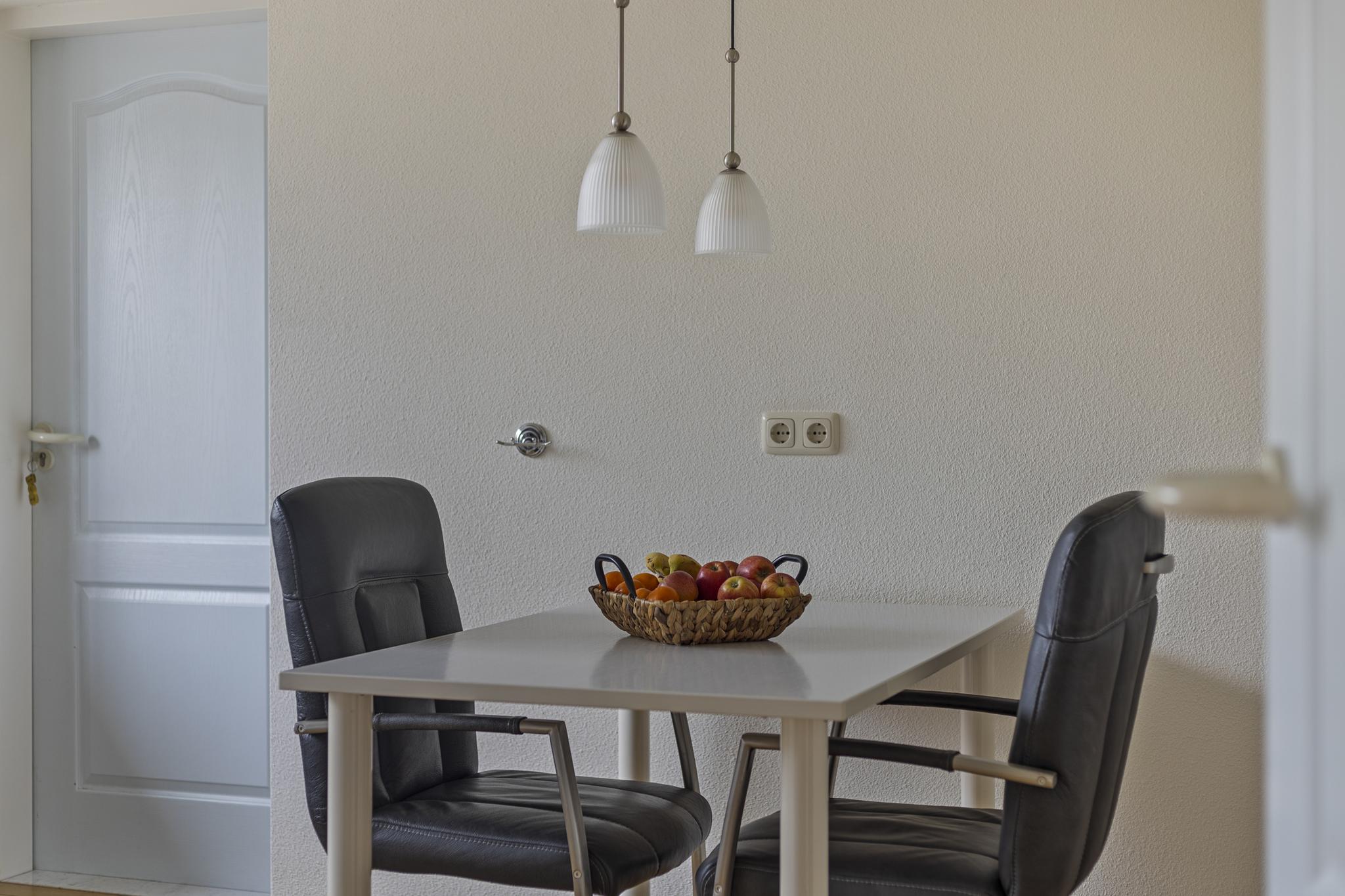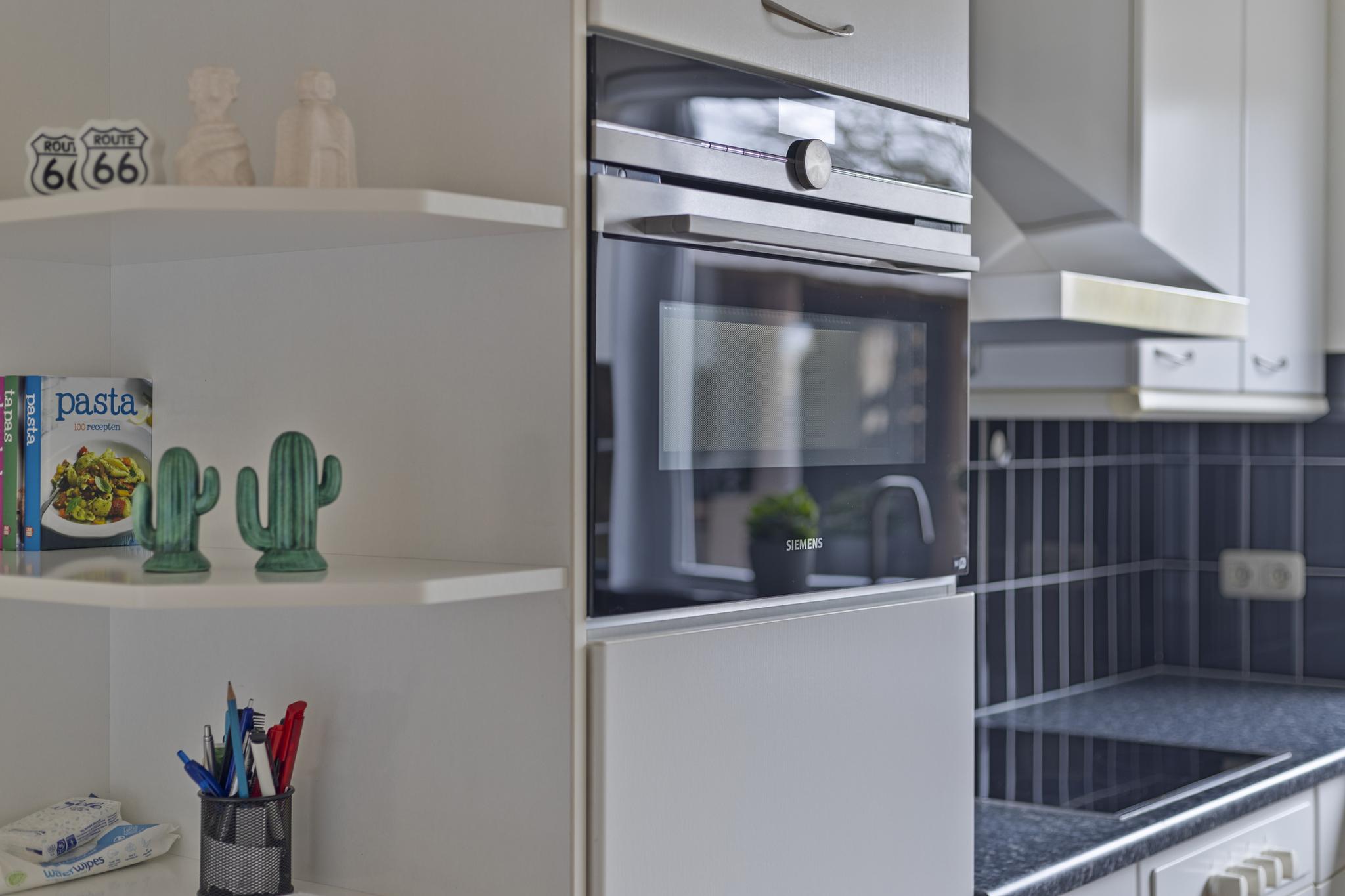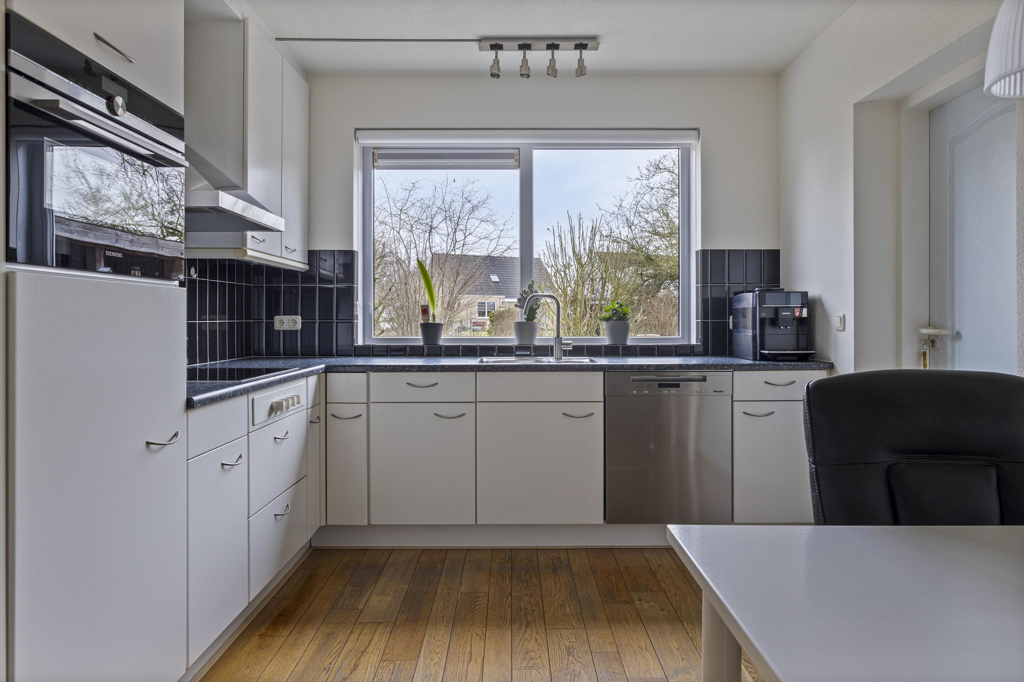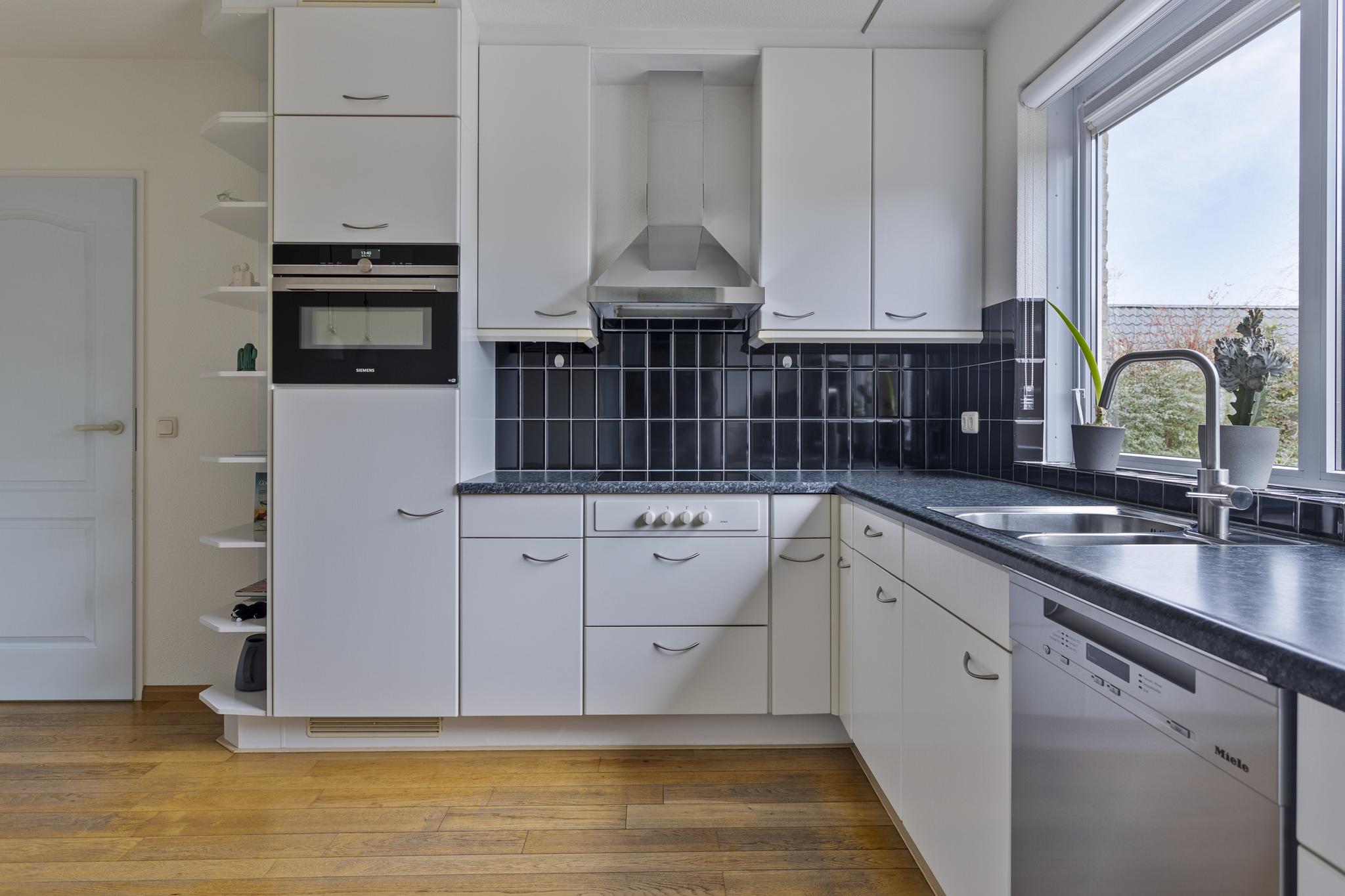 De woonkeuken is ruim van opzet, waar u aan de keukentafel de krant kunt lezen of samen kunt ontbijten. De keuken is uitgevoerd in hoek-opstelling en is voorzien van inbouwapparatuur: