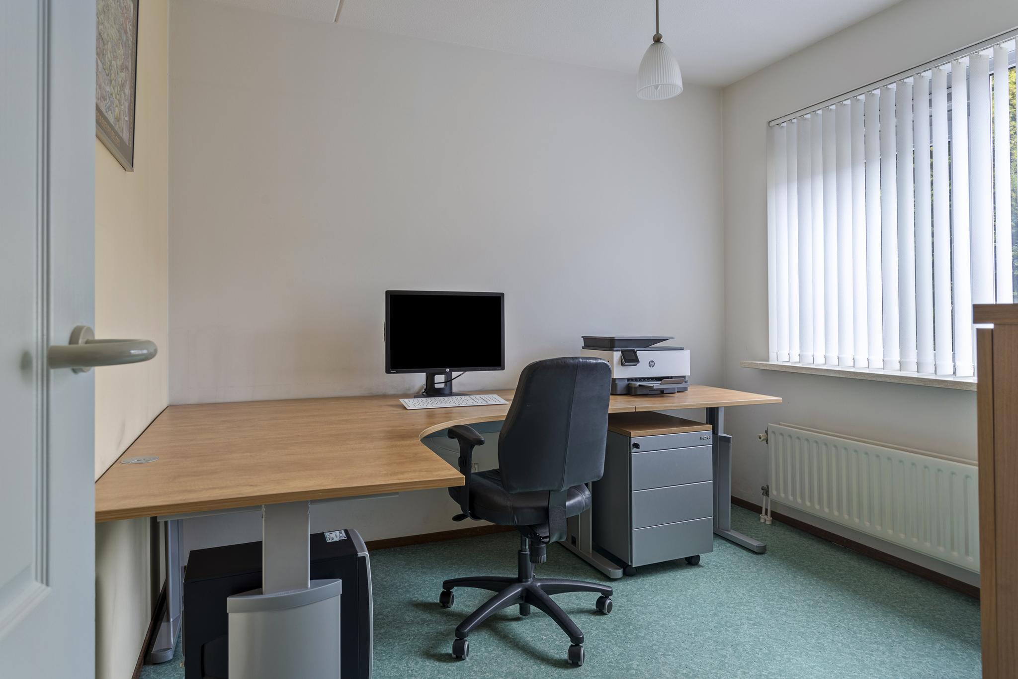 Het kantoor is gelegen aan de voorzijde van de woning en heeft een mooi groot raam. Deze ruimte is ook geschikt als hobbykamer.