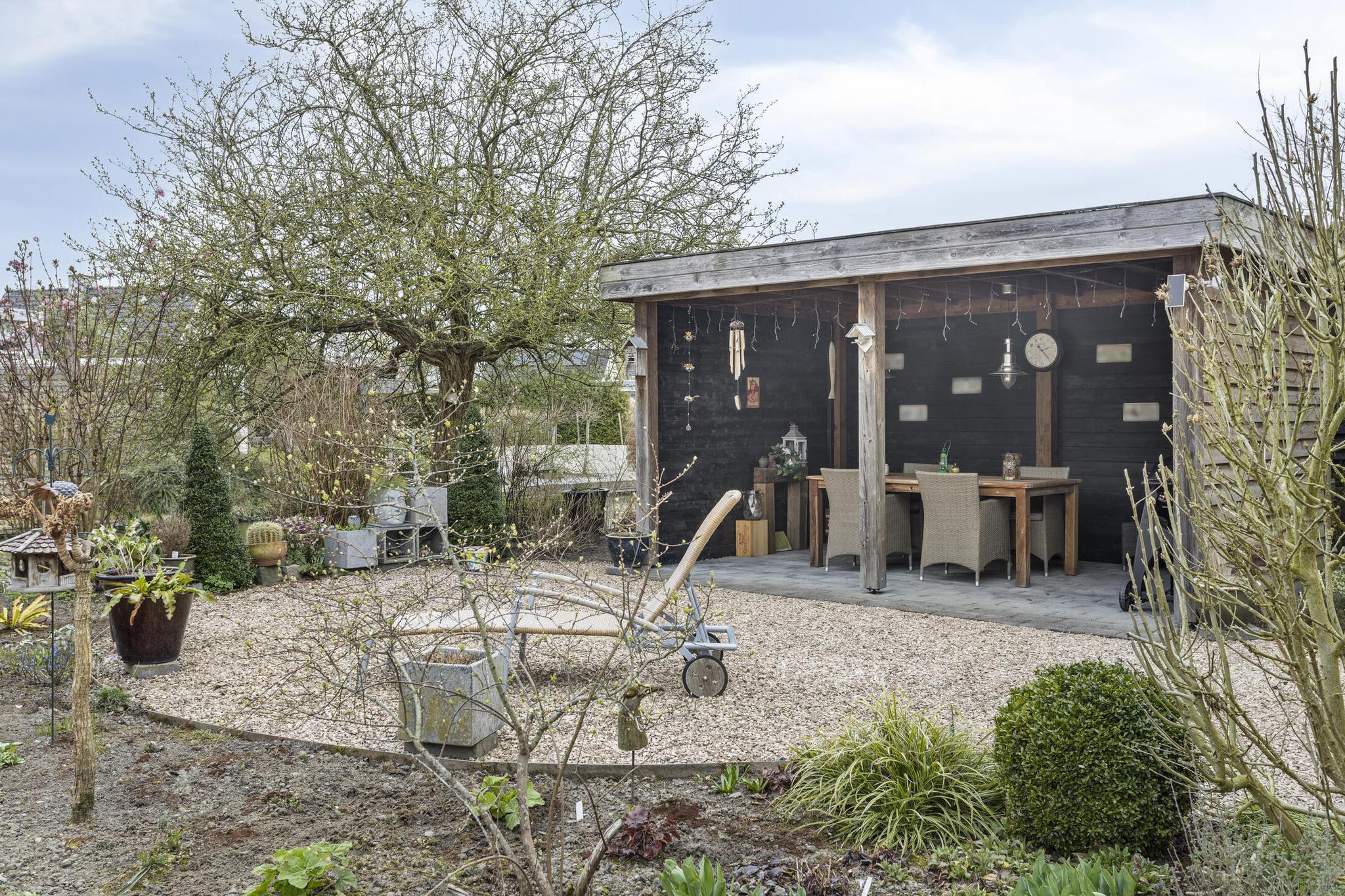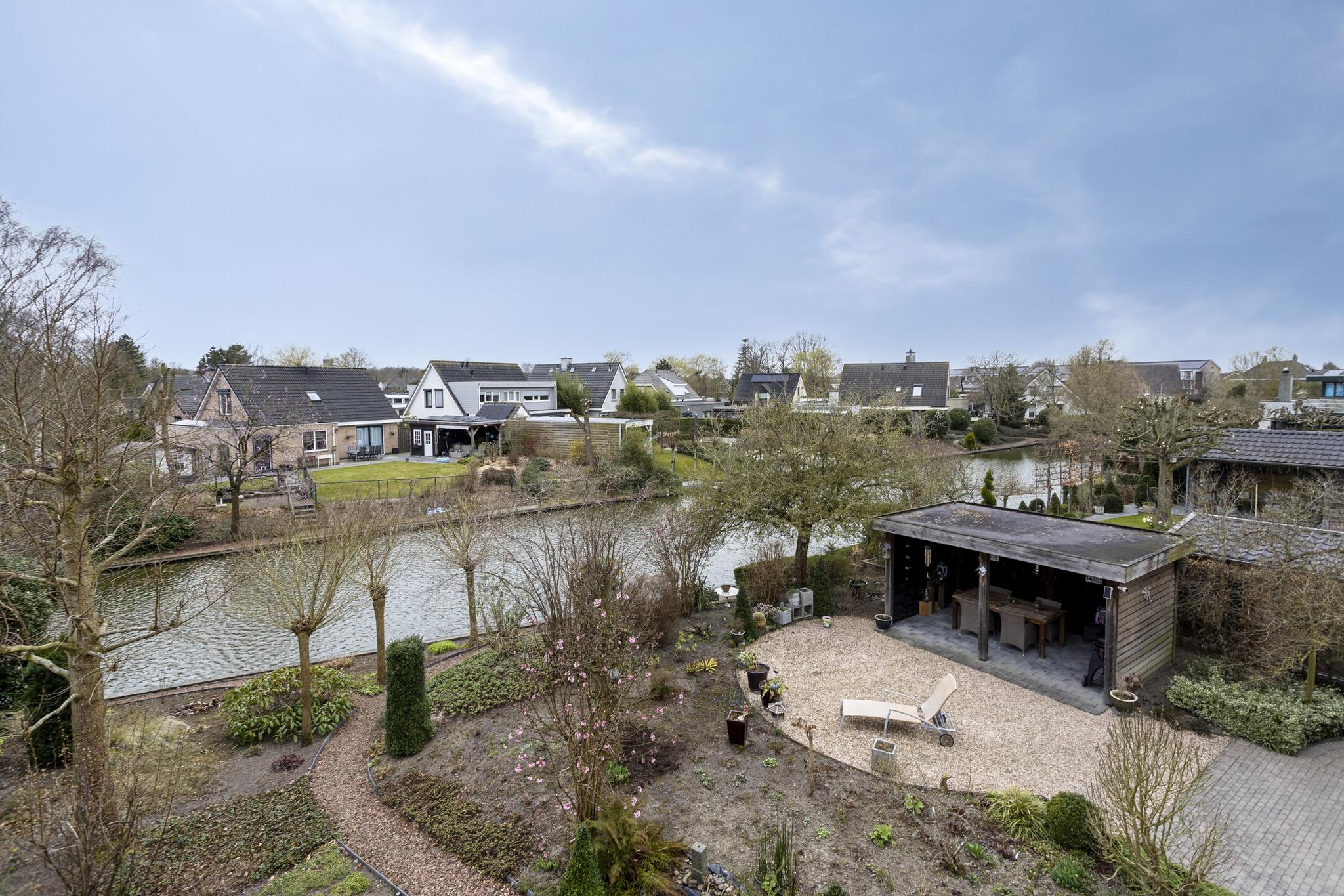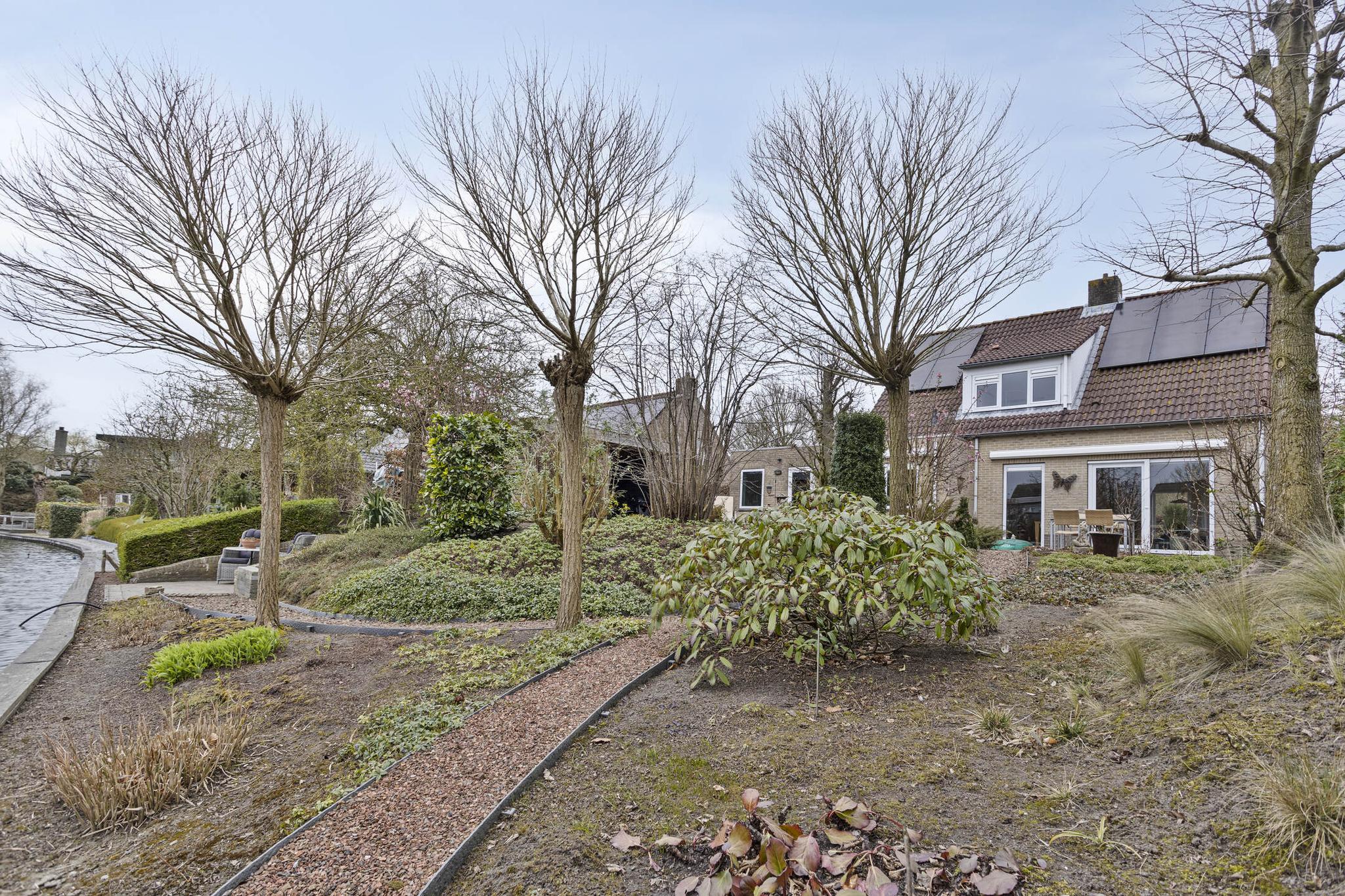 De achtertuin is gelegen op het zuidwesten, zodat u vanaf ’s morgens de hele dag de zon in uw tuin heeft. De achterzijde van de woning is voorzien van 2 elektrische zonneschermen, waardoor het directe zonlicht in de woonkamer geweerd wordt en u heerlijk op het terras kunt genieten van de verzorgd aangelegde tuin. In de tuin staat een houten overkapping, welke voorzien is van elektra. De tuin grenst aan het water en vanaf het laaggelegen terras kunt u genieten van de avondzon en de koelte van het water op een warme zomerdag. De gezamenlijke waterpartij wordt door middel van een VVE beheert en onderhouden. Via het tuinhek kunt de voorzijde van de woning bereiken.
