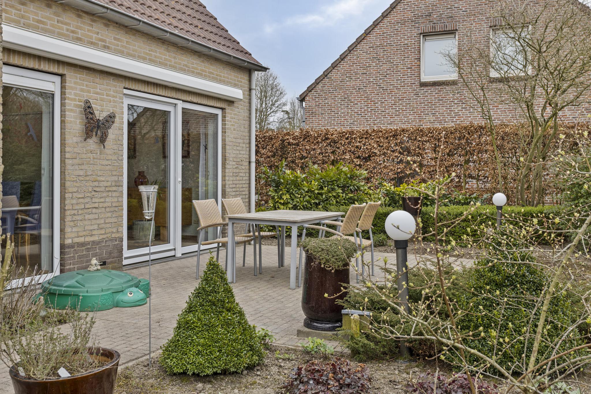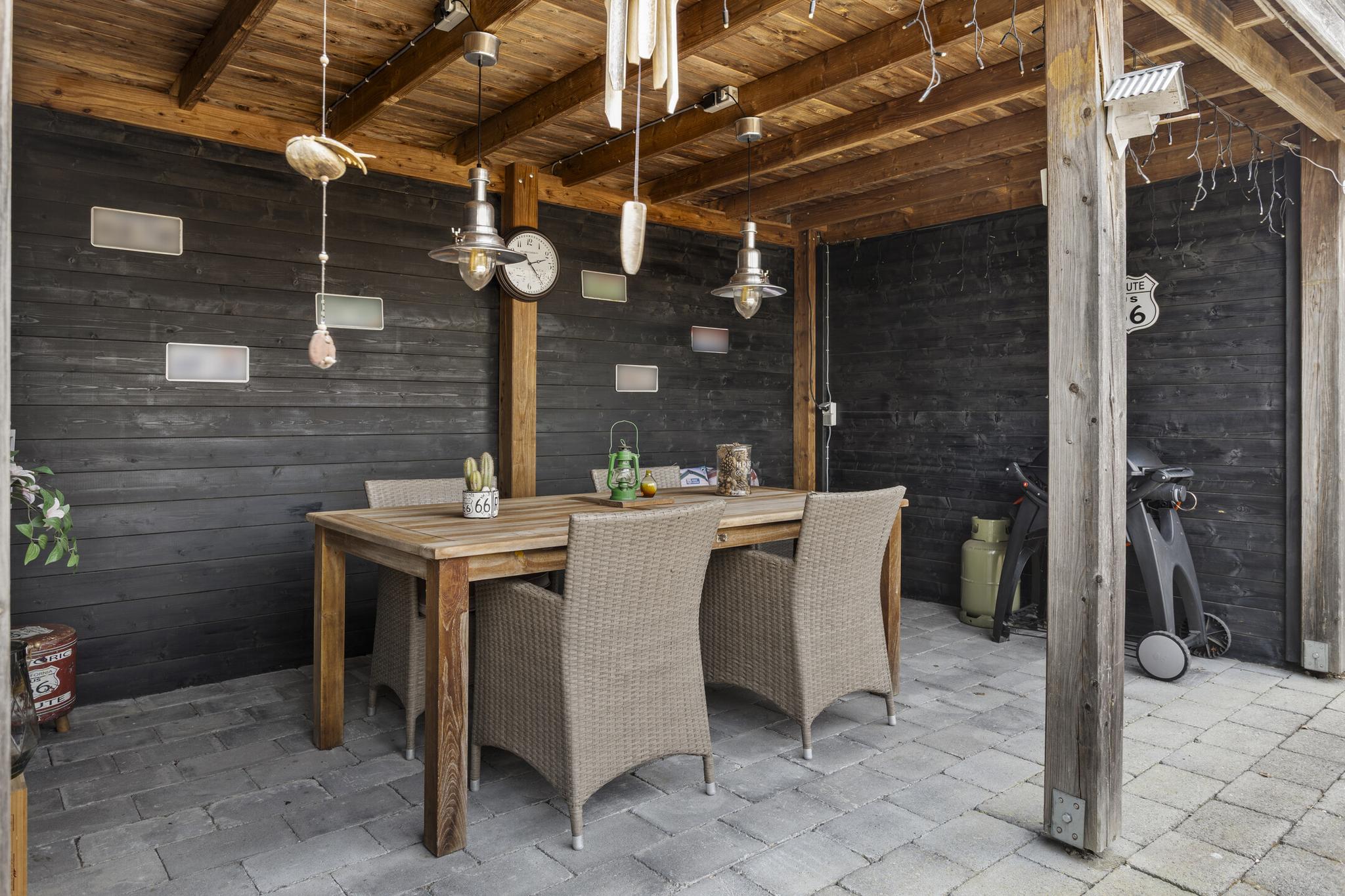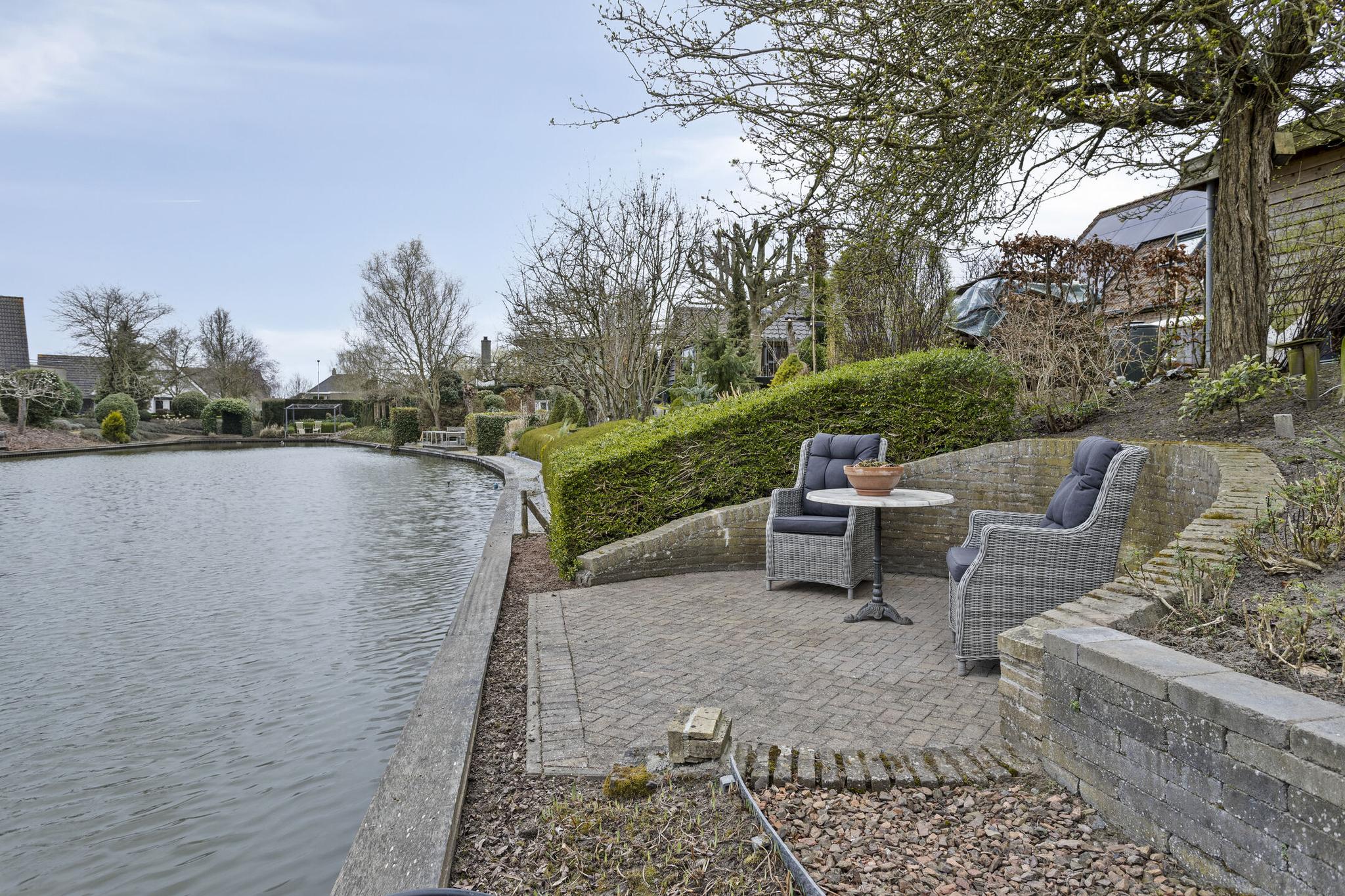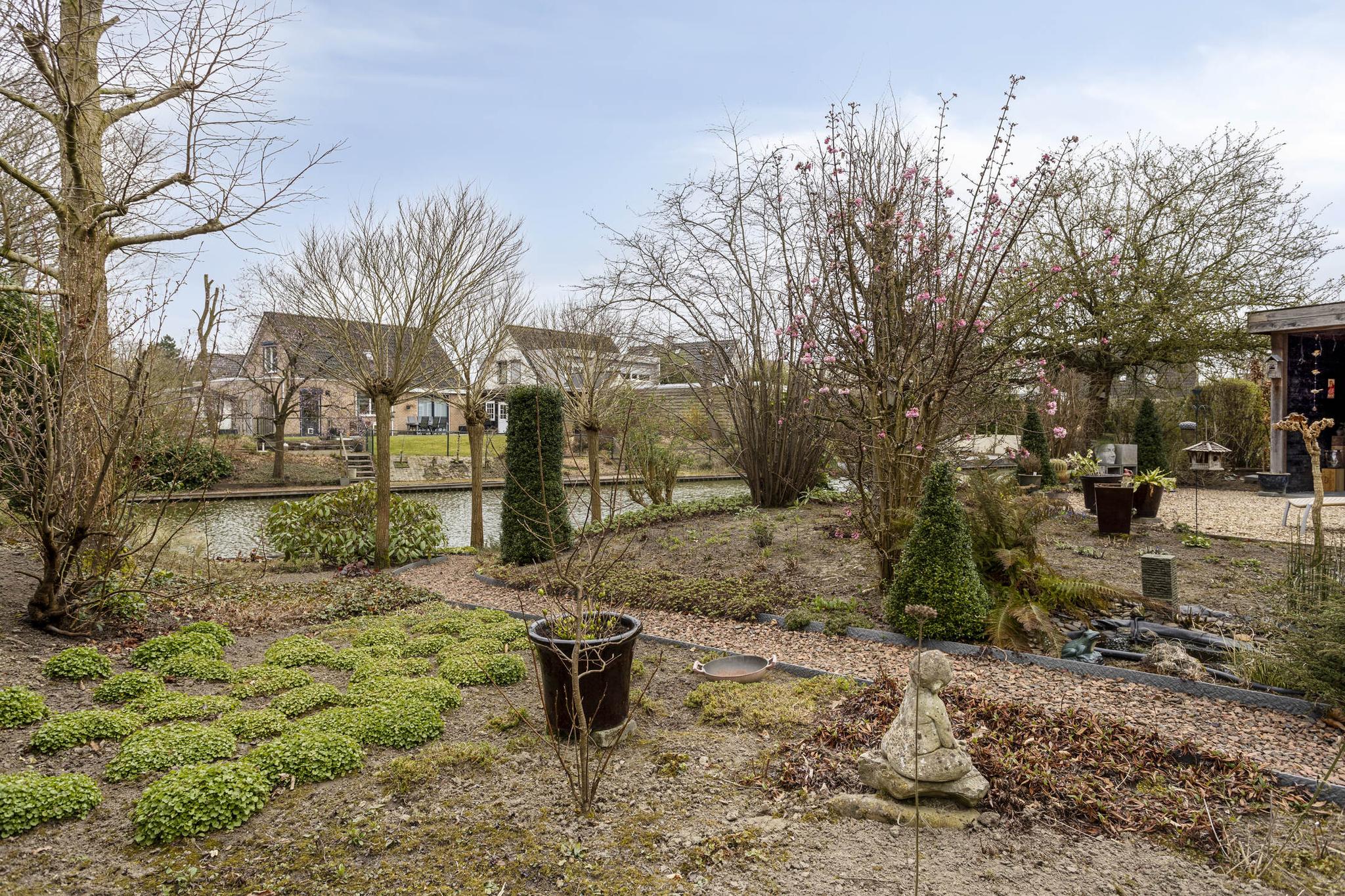De achtertuin is gelegen op het zuidwesten, zodat u vanaf ’s morgens de hele dag de zon in uw tuin heeft. De achterzijde van de woning is voorzien van 2 elektrische zonneschermen, waardoor het directe zonlicht in de woonkamer geweerd wordt en u heerlijk op het terras kunt genieten van de verzorgd aangelegde tuin. In de tuin staat een houten overkapping, welke voorzien is van elektra. De tuin grenst aan het water en vanaf het laaggelegen terras kunt u genieten van de avondzon en de koelte van het water op een warme zomerdag. De gezamenlijke waterpartij wordt door middel van een VVE beheert en onderhouden. Via het tuinhek kunt de voorzijde van de woning bereiken.