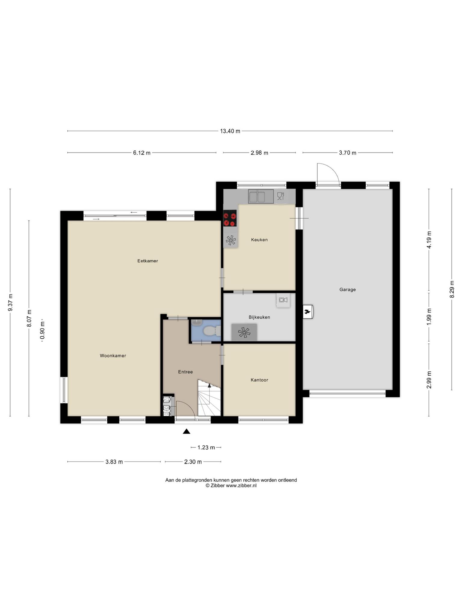 Vanuit de keuken heeft u toegang tot de bijkeuken en de garage.