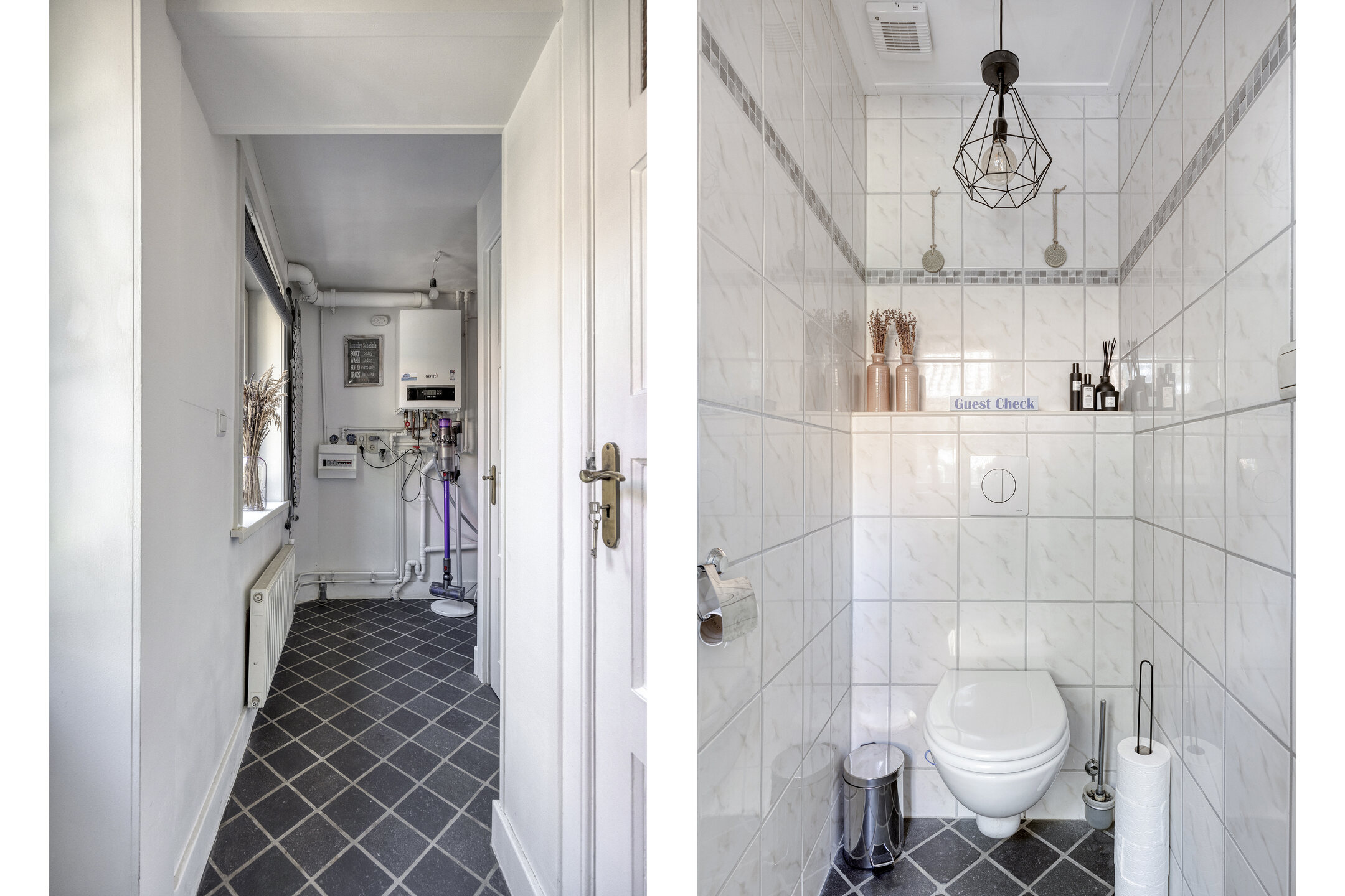 Vervolgens kom je in de bijkeuken met aansluitingen voor de wasapparatuur en hier is de cv- combiketel opgesteld. Tevens is hier het toilet en de toegang naar de kelder. De kelder is uiteraard ideaal voor het opbergen van de wijnvoorraad!