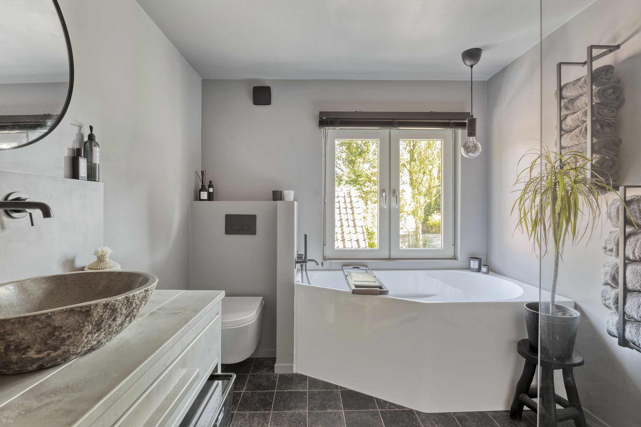 Op de eerste verdieping bevinden zich de overloop, drie slaapkamers en een luxe badkamer. Alle slaapkamers hebben een laminaat vloer en zijn voorzien van ingebouwde kastruimtes. De compleet uitgeruste badkamer beschikt over een wastafel met meubel, inloopdouche, ligbad en 2e toilet. De badkamer is in 2022 vernieuwd en volledig in stijl met de woning.