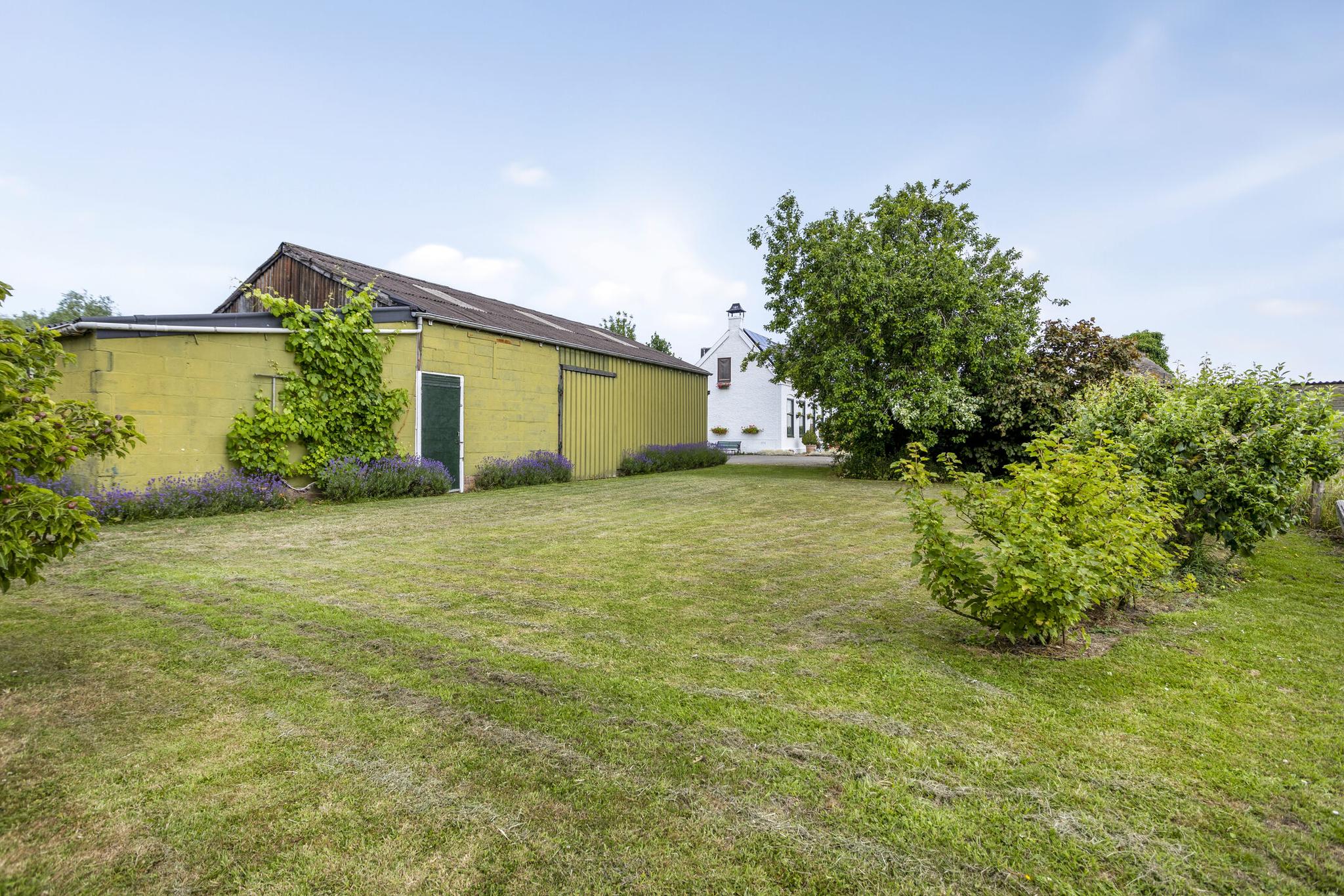 De ruime schuur is gelegen aan de linkerzijde van de woning en is gedeeltelijk voorzien van een vliering. Er is een aparte ruimte voor het parkeren van twee auto’s en biedt volop plaats om te klussen, circa 130 m² schuur. In de schuur zijn elektra en water voorhanden. Aan de achterzijde van de schuur is een stal, waar eventueel dieren kunnen verblijven.