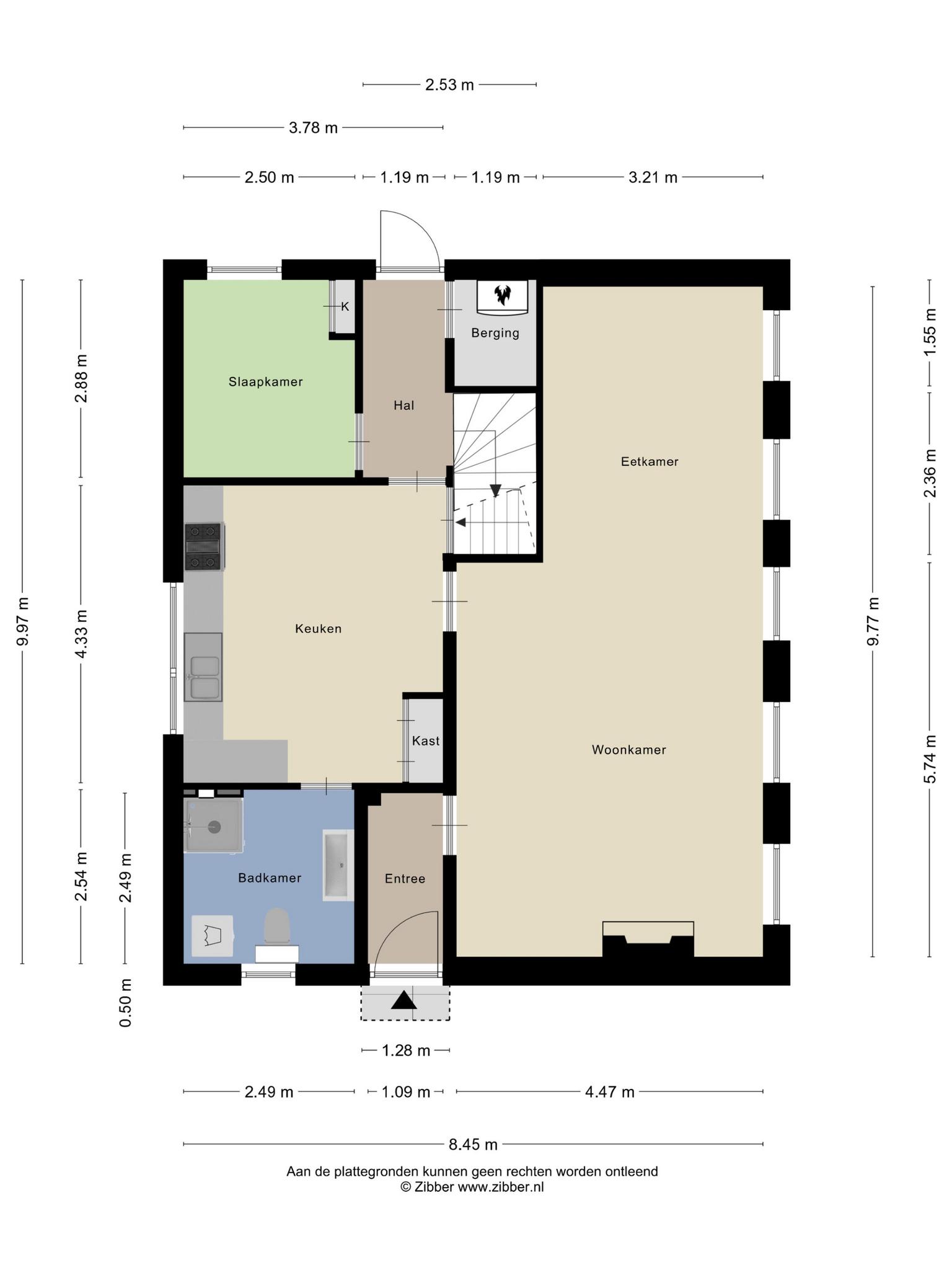 Vanuit de keuken heeft u toegang tot de badkamer, het kantoor (via de hal), de provisiekelder, hal en via de achterdeur is de tuin bereikbaar. Totale oppervlakte circa 16 m². Vanuit de hal is de ruime bergzolder bereikbaar. Deze ruimte leent zich uitstekend voor het opbergen van niet alledaagse spullen.