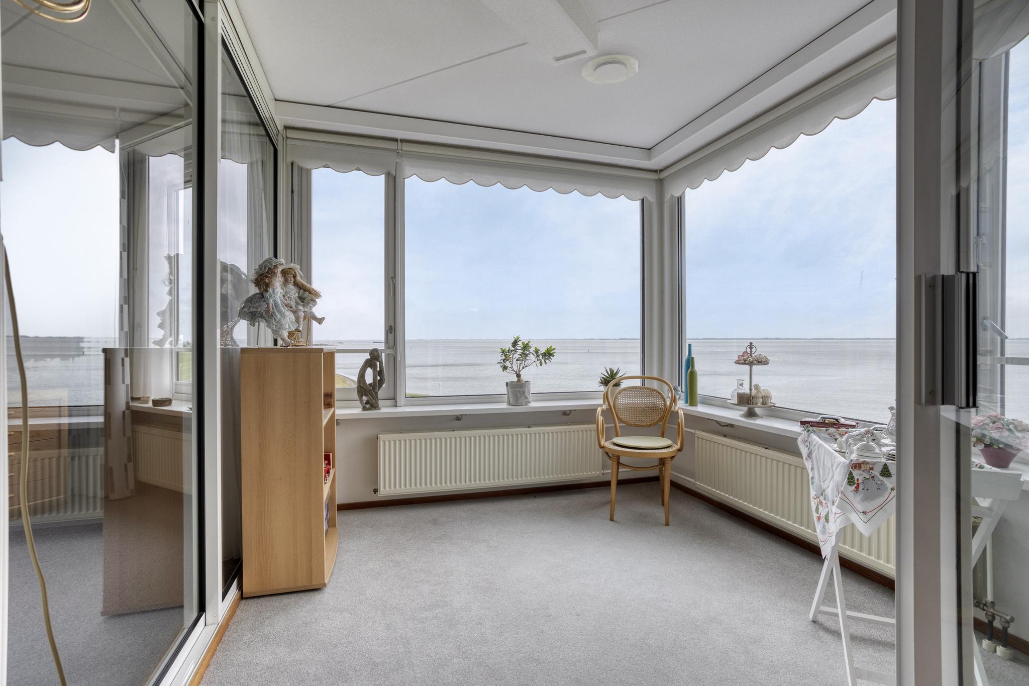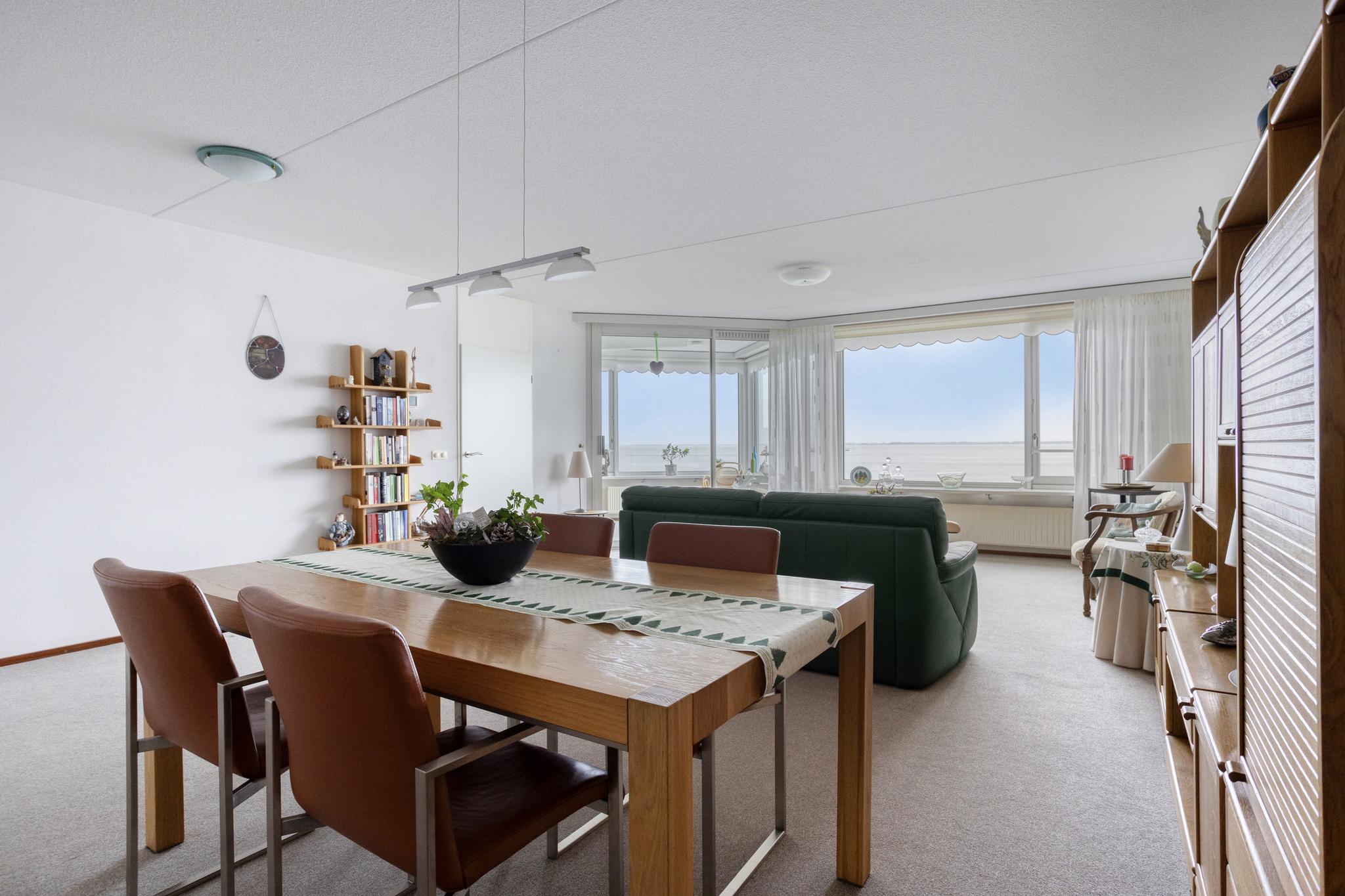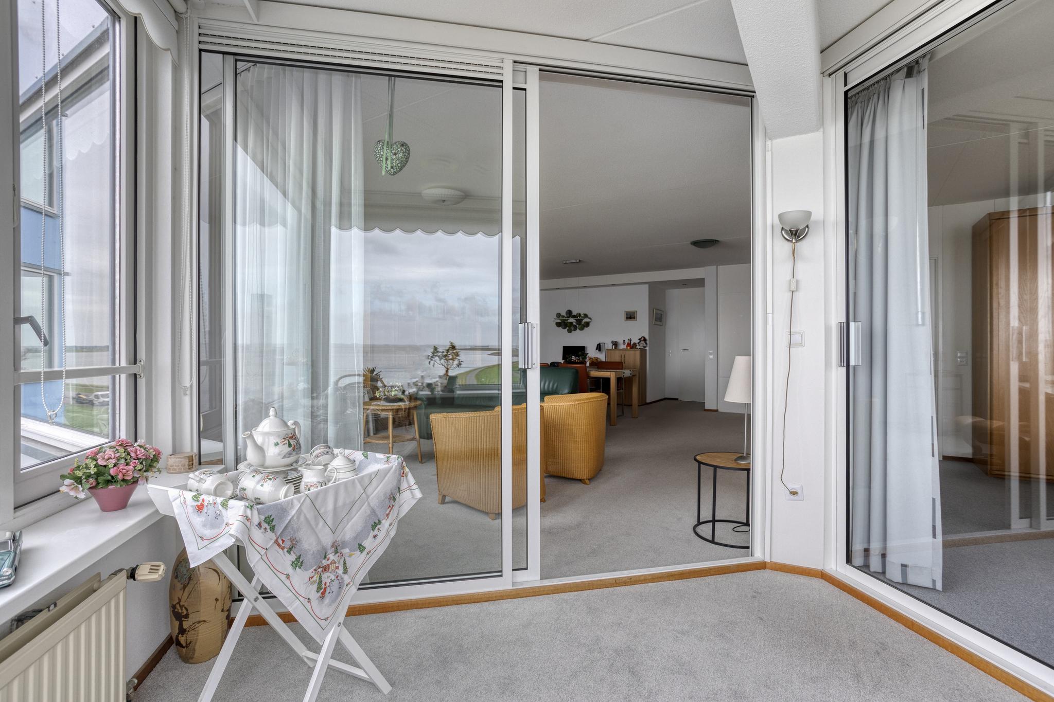 De zeer ruime woonkamer heeft het zitgedeelte met grote raampartijen aan de kant van de Westerschelde waar u een panoramisch uitzicht heeft over het vaarwater. Daarbij heeft de woonkamer een afsluitbare serre die ook vanuit de slaapkamer te bereiken is.