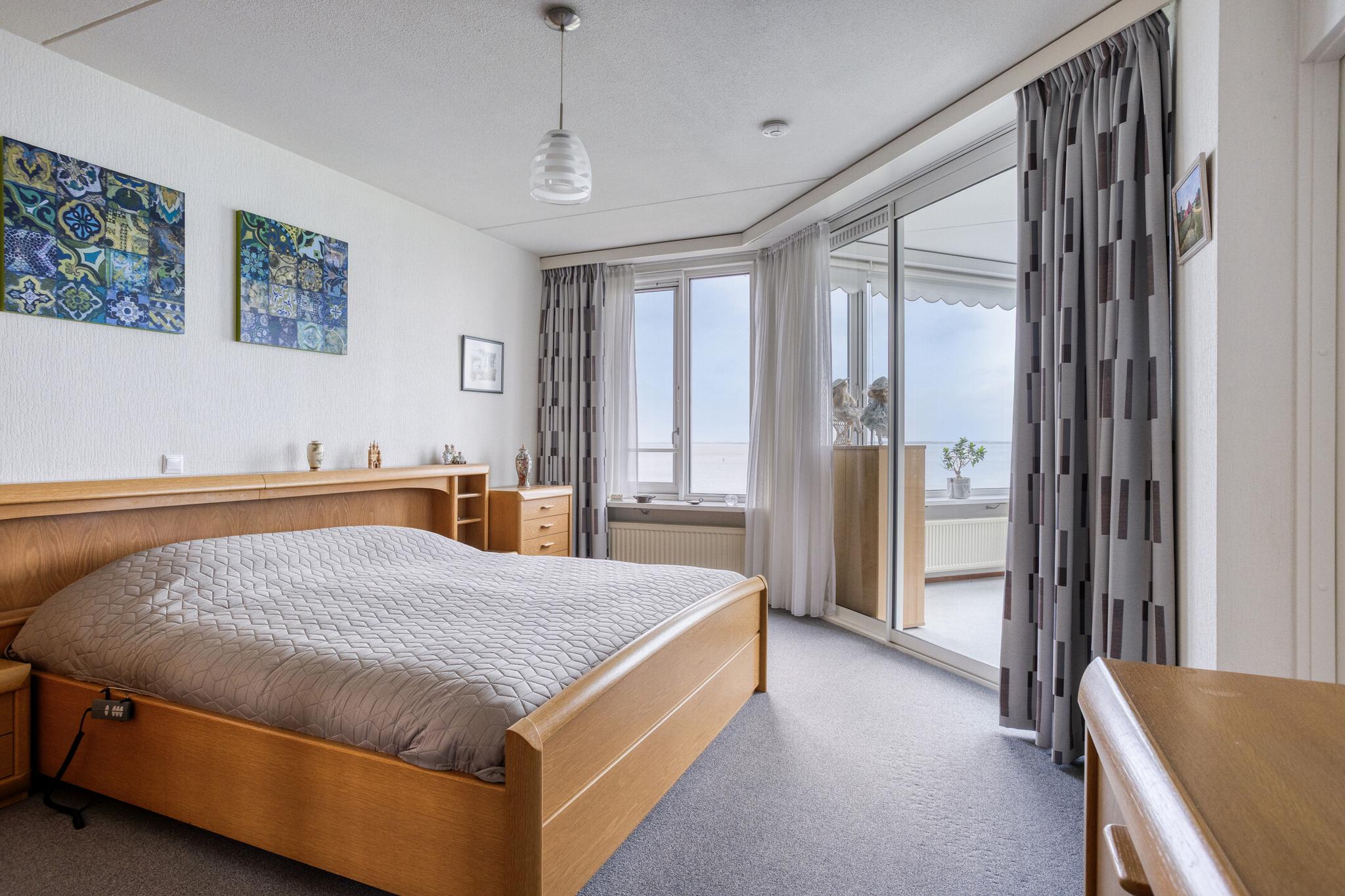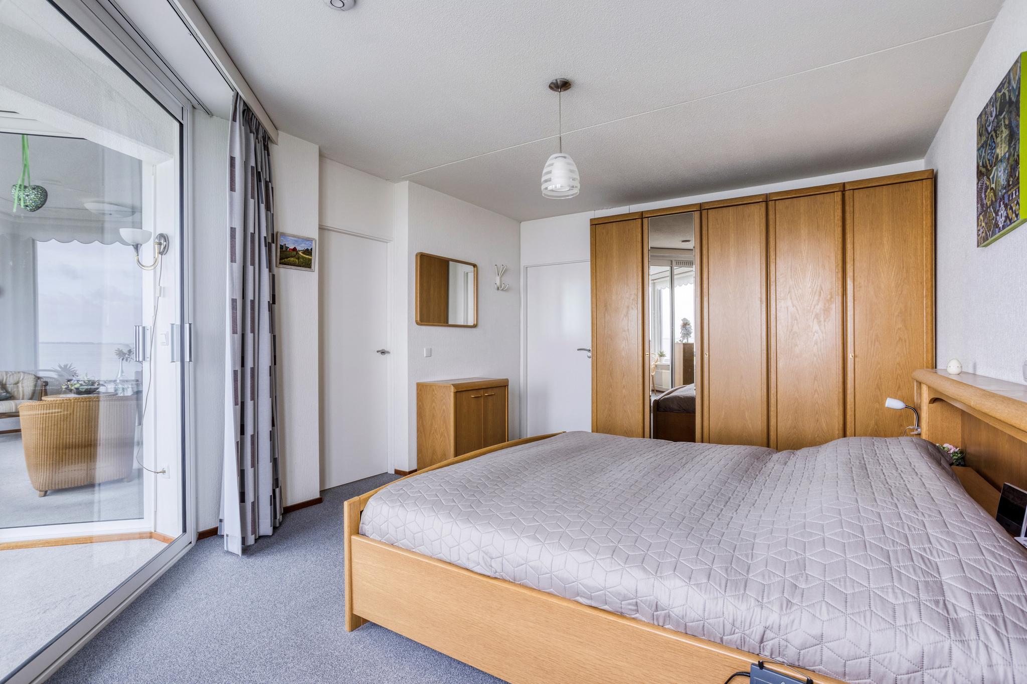 De master slaapkamer is aan de voorzijde van het appartement gelegen met schuifdeur naar de serre. Vanuit de slaapkamer is de badkamer te bereiken. De badkamer is in 2019 vernieuwd en uitgerust met een dubbele wastafel met meubel, inloopdouche en 2e toilet. De 2e slaapkamer is gelegen aan de voorzijde van het appartement en van hieruit is ook toegang tot het balkon.