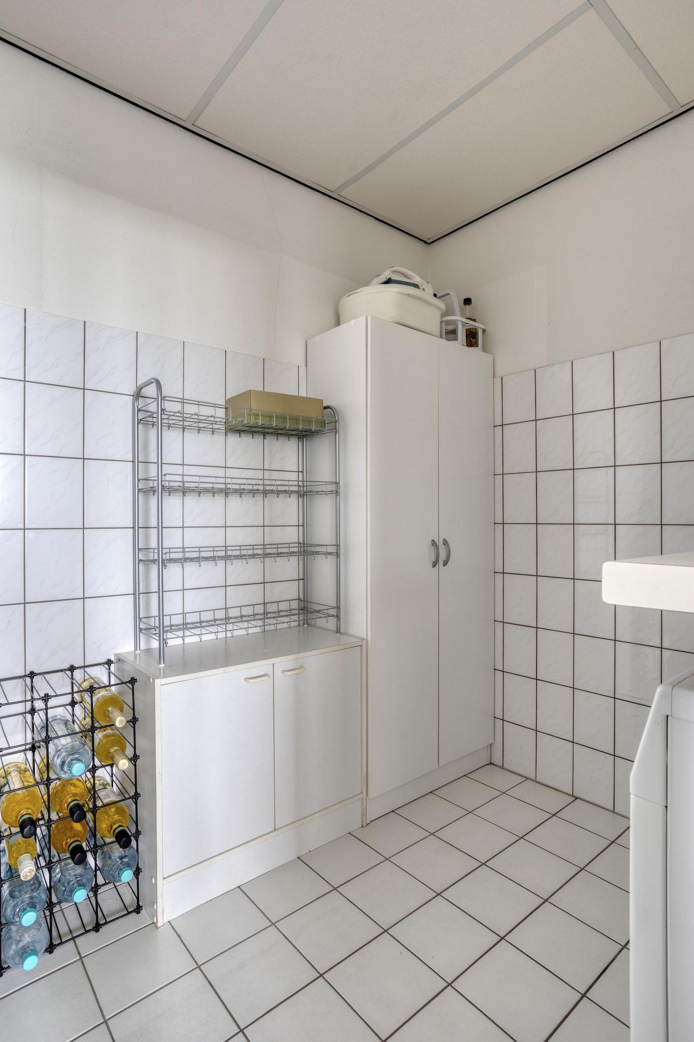 Aansluitend aan de keuken is de ruime bijkeuken. Deze is half betegeld en hier is volop ruimte voor het plaatsen van een extra koelkast, vriezer of voorraadkast.