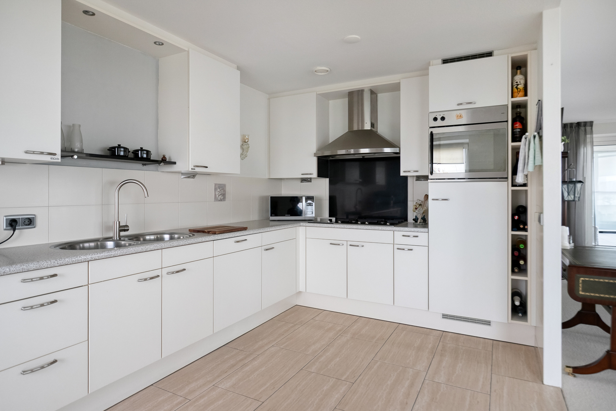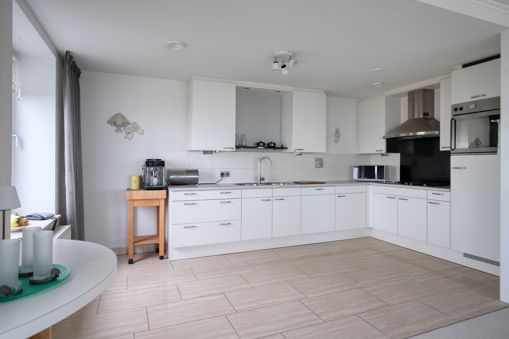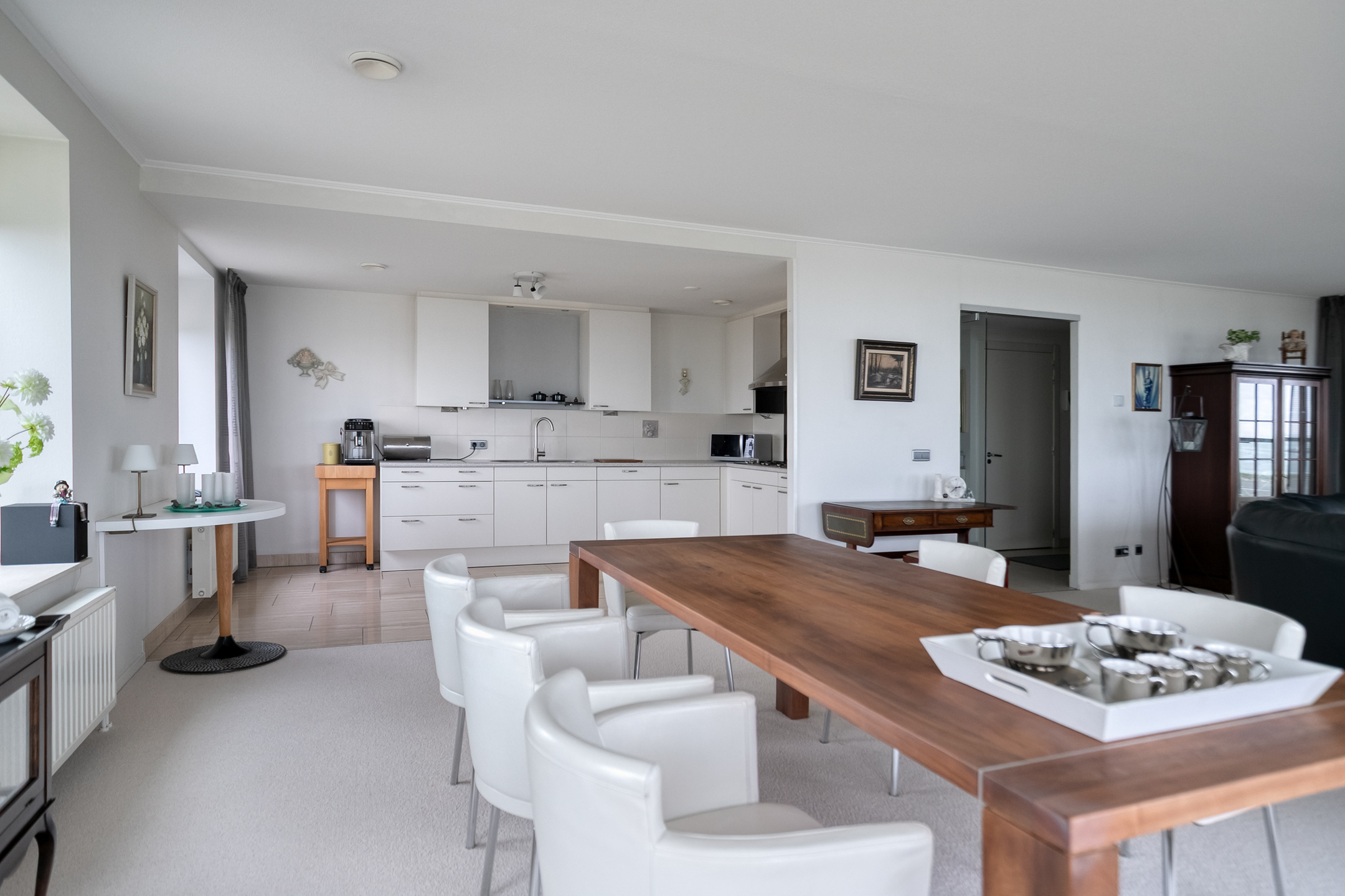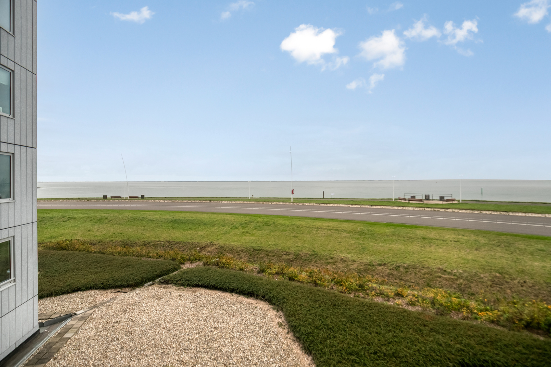 Via een elegante glazen deur kom je in de royale woonkamer met open keuken. Dankzij de grote raampartijen geniet je hier van een prachtig panoramisch uitzicht op de Westerschelde, met lichtinval vanuit het noorden, oosten en westen. Vanuit de woonkamer heb je directe toegang tot een ruim privébalkon, perfect om buiten te ontspannen met zicht op het water.