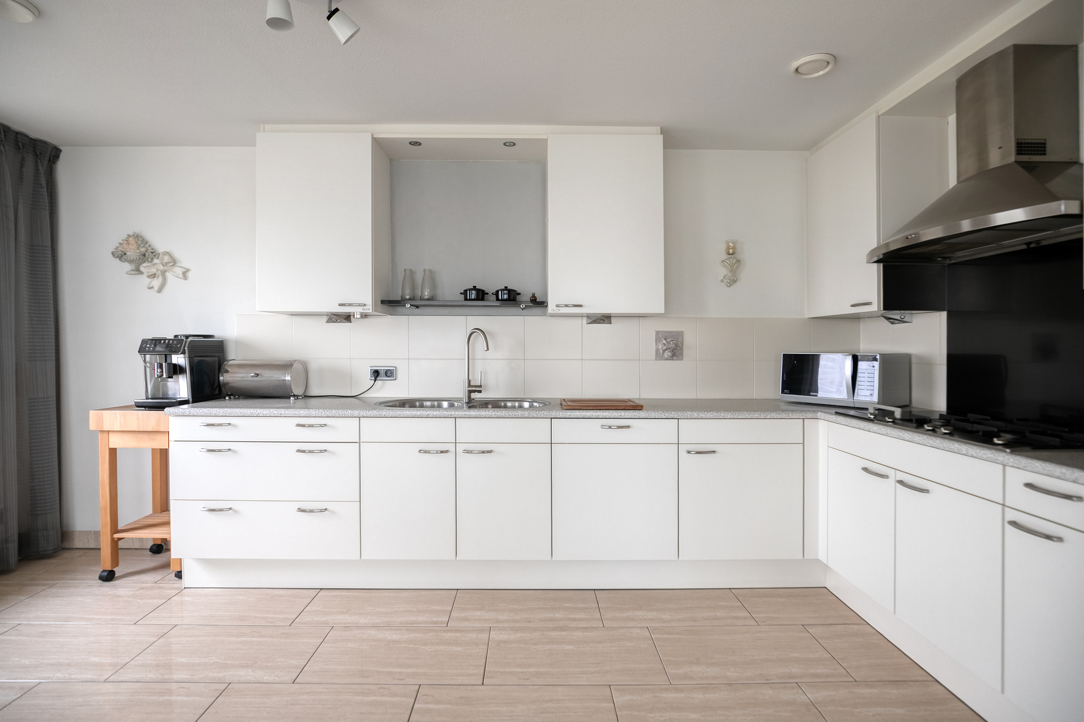 De open keuken (Siematic) is opgesteld in een hoekopstelling en voorzien van een dubbele spoelbak en uitgebreide inbouwapparatuur, waaronder: