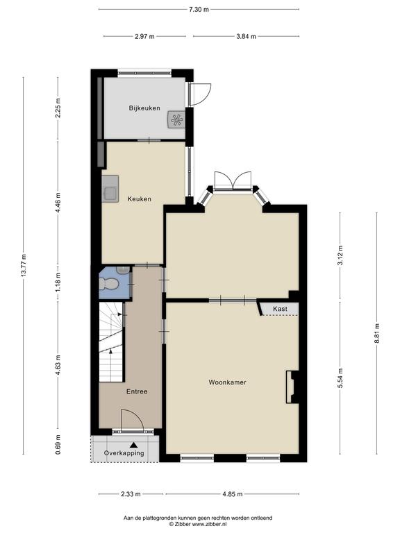 Toegankelijk via voorzijde gebouw en achtertuin. Voorzien van hobby/werkkamer aan voorzijde, tuinkamer met tuindeuren aan de achterzijde.