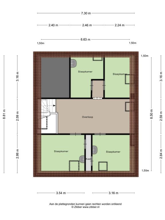 Slaapkamer 5 voorzijde (354cm*286cm) voorzien van veluxraam, wastafel en vaste kast. Slaapkamer 6 voorzijde (316cm*284cm)